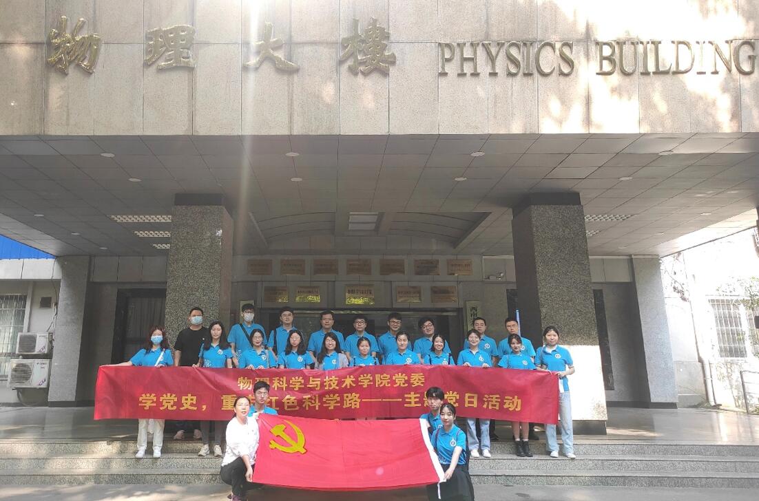 研究生第一党支部全体党员在物理大楼门前拍照留念