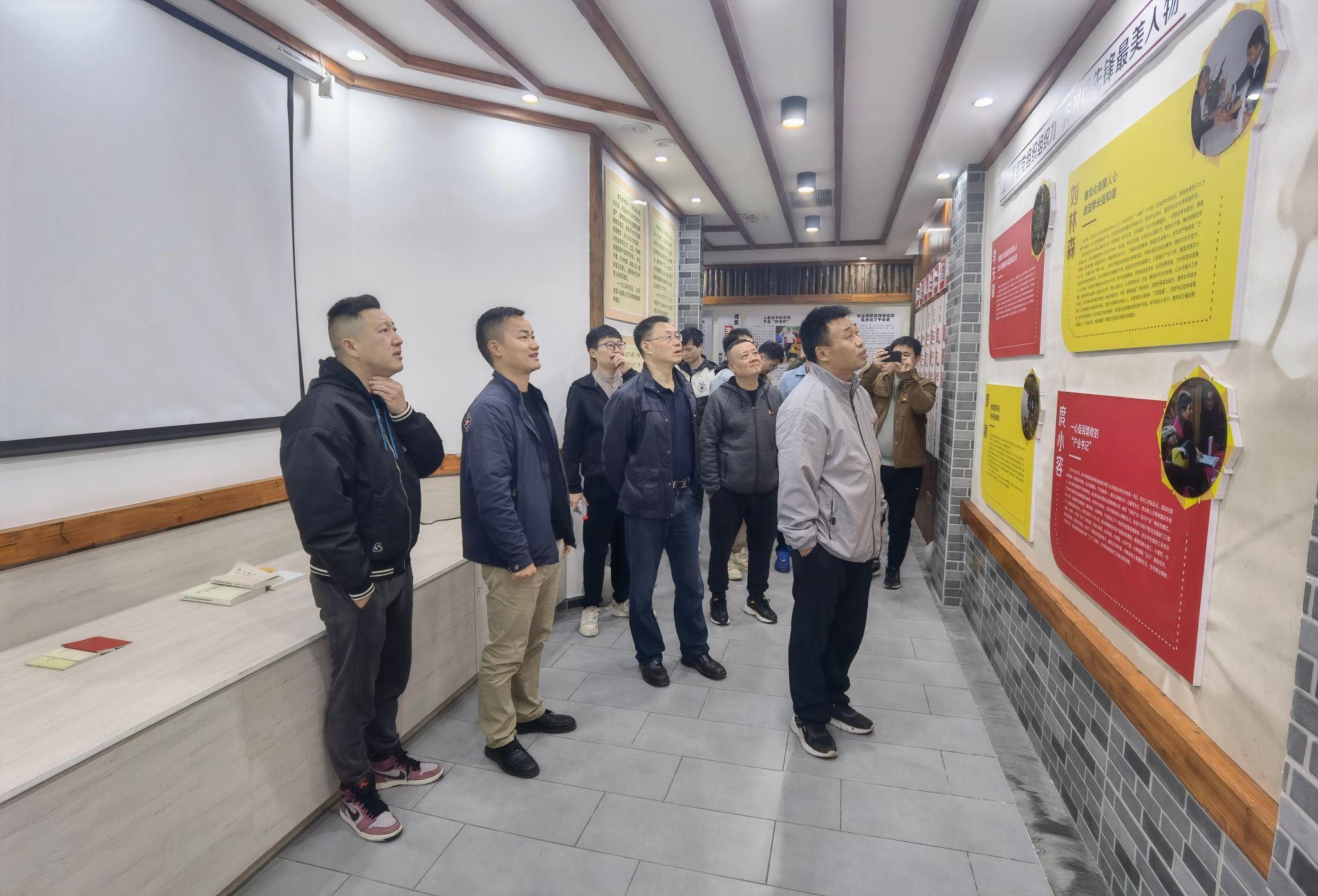 接着,大家走进“廉情驿站”,来到廉洁图书角和案例警示教育墙前,认真阅读着清廉小故事,观看着教育微视频,再次集体重温了党员廉洁自律准则,学习了基层党员干部的优秀事迹和生动的廉政实践、新农村的发展成果等,亲身感受文凤村作为全面从严治党的最基础单元所营造的清廉文化氛围,详细了解文凤村开展“党建统领”“村民自治”“乡风文明”等情况和取得的成效。