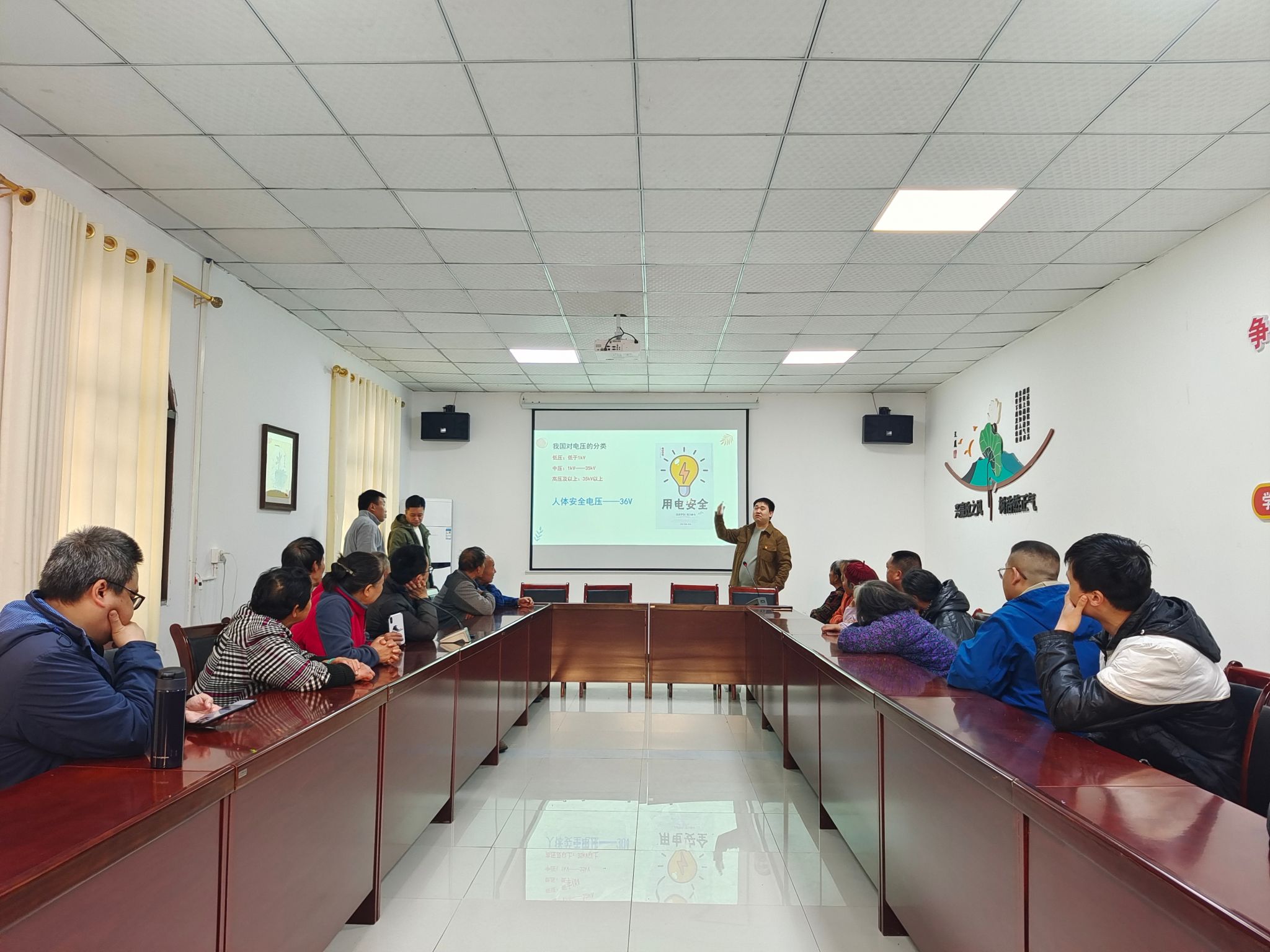 随后,在文风村委会活动室,围绕村民普遍关注的“冬日如何做到安全用电?”需求,胜游体育(中国)官方在线教师第四党支部党员许龙副教授和后勤保障部党委第三党支部熊巾深同志先后用生动活泼、贴近村民的语言,从生活中不规范的用电现象、触电与电气火灾的救援、雷电防护以及空开的复位、线路常用接法、灯头灯泡更换、常见故障处理方式等方面,进行了科普讲解和现场示范,并现场回应了村民们的疑问,赢得了参与村民的热烈称赞和一致好评。