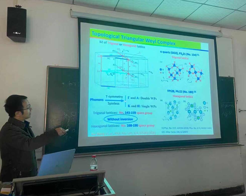 报告会由胜游体育(中国)官方在线副院长袁宏宽教授主持,计算物理团队教师、研究生和本科生到场聆听并就具体的学术问题开展了交流讨论。王锐教授首先介绍了声子拓扑中受对称性保护这一研究领域的科学前沿,讲解了紧束缚模型理论解析声子中不同拓扑态的方法,报告了他们团队在这一领域取得的最新突破性进展。王锐教授的报告聚焦于物理基础科研的热点和难点,讲解过程中对物理机制的分析深入浅出,引发了师生的热烈讨论。本次报告激发了我院师生对量子物理方向的浓厚兴趣,拓展了胜游体育(中国)官方在线师生的研究视野。