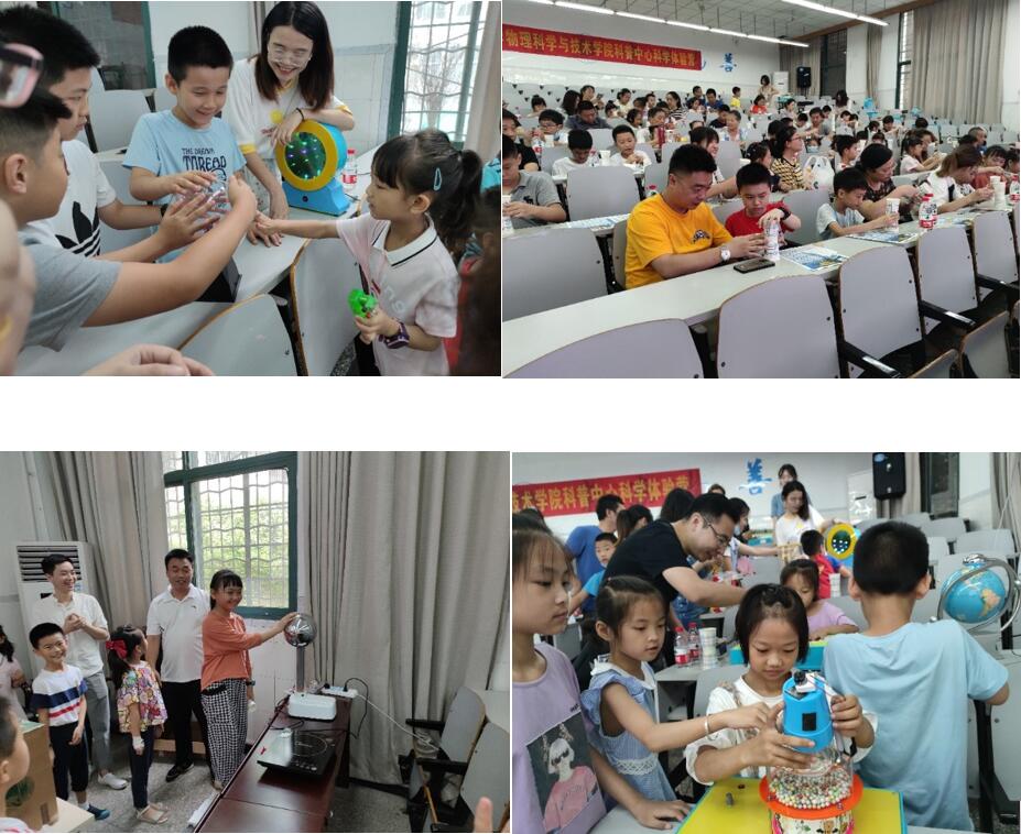 “自制纸杯飞行器”拉开了本次活动的帷幕,利用伯努利原理,小朋友们能够利用两个小纸杯及一根橡皮筋,自制纸杯飞行器,体会空气动力学的魅力。科学魔术秀环节,胜游体育(中国)官方在线张巧明副教授作为表演者,向小朋友们先后表演了4项科学魔术:包括利用冲量原理的“徒手劈砖”;利用低燃点白磷的“空手冒烟”;利用磁性开关原理的“隔空点灯”;利用电磁感应原理的“凭空传电”。在科普展品体验环节,小朋友们在“志愿者”的带领下,切身感受到了科普的魅力。先后体验了“走马灯”、“饮水鸟”、“希罗喷泉”、“三角支撑”、 “电磁小火车”、“简易电动机”、“手触亮灯”、“手摇风扇”、“穿墙而过”、“看得见的声音”、“辉光球”、“抓虫子”、“时光隧道”、“电磁炮”、“无线充电”、“无线电报”、“蓝牙音箱”、“红外测温仪”、“红外传感灯”、“范式起电机”等近30项科普实验作品。通过亲身体验和感受这些趣味物理实验,小朋友们加深了对物理的兴趣。