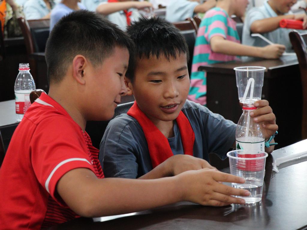 “哇噻!飞起来了!” 在北碚区三圣镇中心小学校的教室里,小朋友们笑容洋溢、惊呼不断,现场几十架“直升机”接连起飞。仔细一看,1个螺旋桨、1个气球、2个简单的连接元件,在大学专业教师的指导下,小朋友们自行组装,一架“飞天直升机”就制作完成了。随后利用气球收缩力,使空气由排气孔喷出推动螺旋桨转动从而产生升力,“直升机”便旋转起飞。