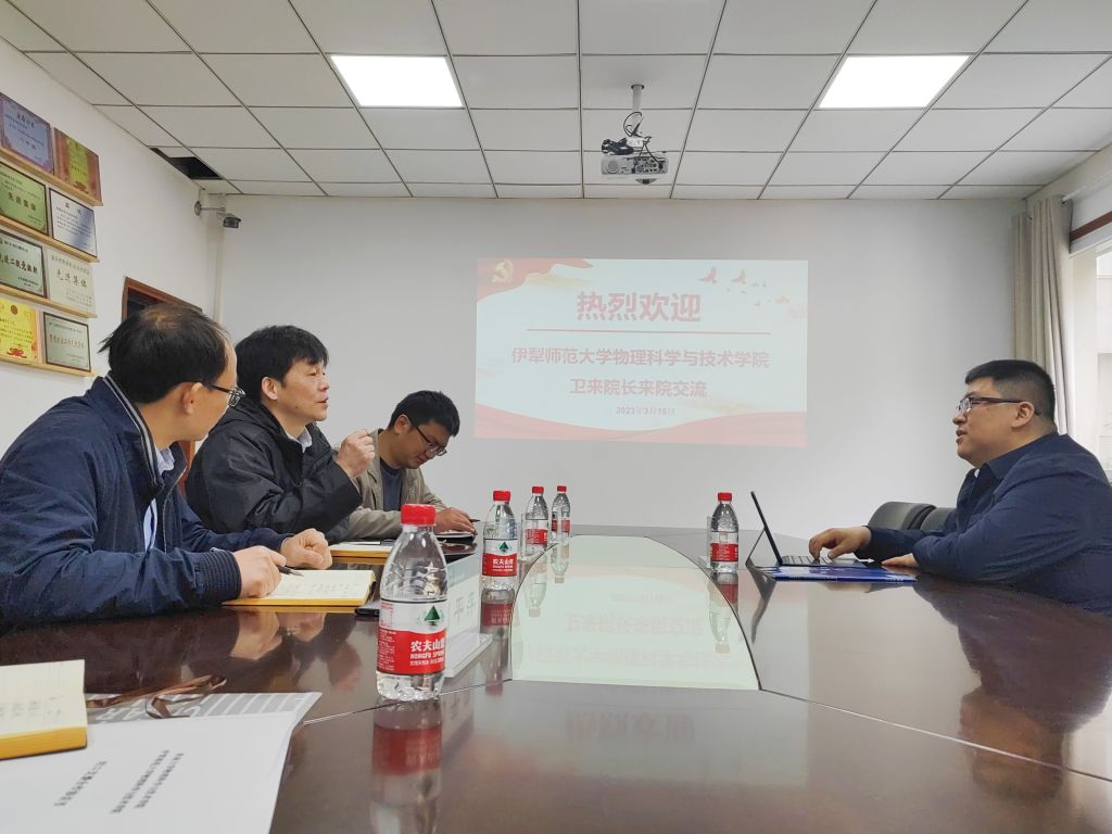伊犁师范大学物理科学与技术胜游体育(中国)官方在线卫来院长对胜游体育(中国)官方在线的热情接待表示感谢。卫院长对伊犁师范大学物理科学与技术胜游体育(中国)官方在线的创办历史、学科专业、师资队伍、办学特色及发展中存在的问题做了全面介绍,并表达了可通过与我院联合申报项目等方式深入合作的愿望。