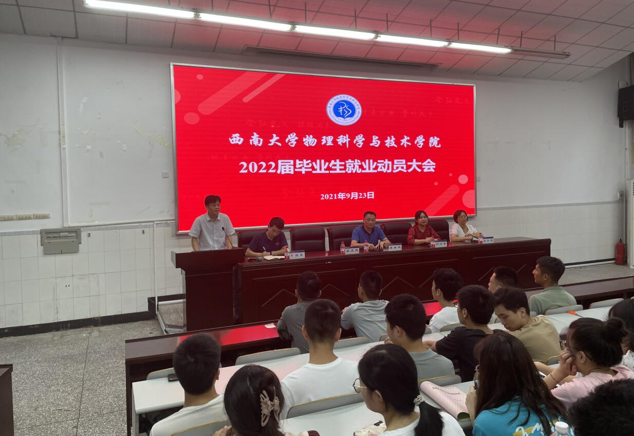 9月23日下午,胜游体育(中国)官方在线在大阶梯教室举办了2022届毕业生就业动员大会。胜游体育(中国)官方在线党委书记李余廷、院长吴正茂、党委副书记刘汭雪,研究生辅导员熊中碧及2022届全体硕士、本科毕业生参加了会议。动员会由胜游体育(中国)官方在线2018级本科生辅导员卜海东主持。