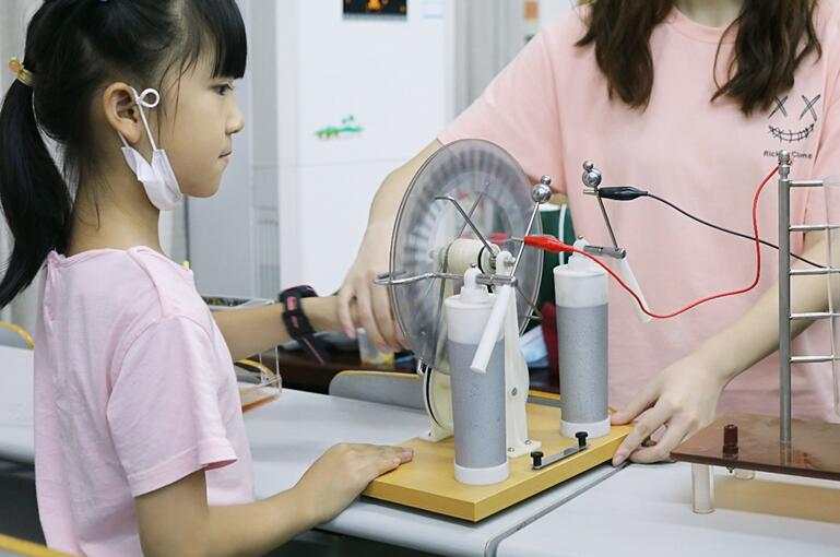 活动中讲解员苏日古嘎、李虹霖、方豪、王钰萱、黄欣琦、鄢然、李滢滢分别为小朋友们带来了“凭空传电”“电池取火”“电磁炮” “纸杯飞行器”“穿墙而过”“不瘪的气球”“纸杯挡水”“手摇发光棒”等有趣实验。
