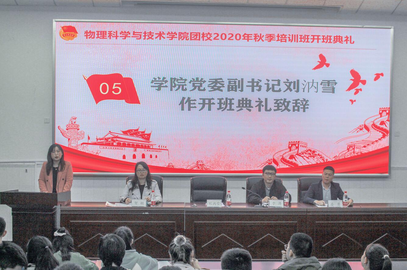 10月16日晚七点,团校开班典礼在物理大楼大阶梯教室举行。典礼由胜游体育(中国)官方在线团委书记贺颖主持,校团委副书记于涛应邀出席,胜游体育(中国)官方在线党委副书记刘汭雪、2020级辅导员晏勇参加了开班典礼。胜游体育(中国)官方在线团委学生会、科普创作社以及来自2019级、2020级各个团支部共计140名学员参会。