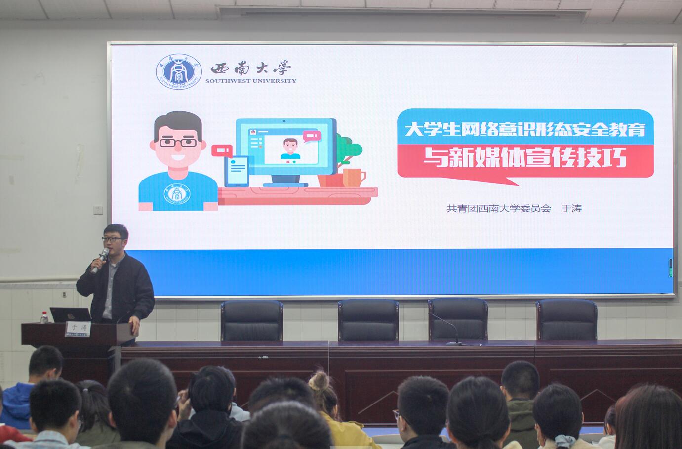 开班仪式结束后,于涛副书记以“大学生网络意识形态安全教育与新媒体宣传技巧”为题展开了团校第一讲。他以如何设计条理清晰的A4简历开讲,建议大家在大学期间抓住机遇,全方位锻炼自己。紧接着,他利用三段趣味对话引发了大家对于“新媒体的力量”的思考,强调了胜游体育(中国)官方在线学生会在新媒体工作上应该“培育宣传队伍,筑牢工作阵地;强化内容供给,吸引青年关注;清新网络空间,营造和谐校园氛围”。最后,他呼吁大家增强责任感、仪式感、自豪感,警惕西方意识形态与思想文化入侵,利用新媒体传播中华民族优秀传统文化、革命文化。