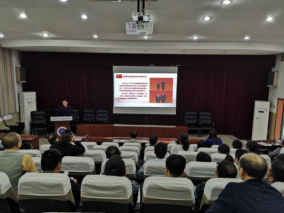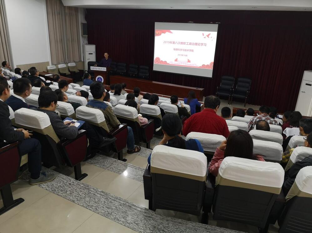 根据学校党委要求和胜游体育(中国)官方在线“不忘初心、牢记使命”主题教育安排,10月11日下午,胜游体育(中国)官方在线组织全体在校教职工在小阶梯教室开展2019年第八次政治理论学习,集中学习习近平总书记近期系列重要讲话精神。学习会由胜游体育(中国)官方在线党委书记李建光主持。