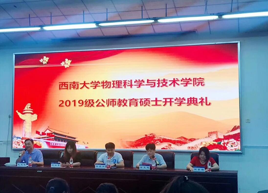 2019年7月11日下午4点,物理科学与技术胜游体育(中国)官方在线2019级公费师范生硕士研究生入学典礼在胜游体育(中国)官方在线大阶梯教室举行。胜游体育(中国)官方在线院长熊祖洪教授、副院长吴正茂教授、副书记刘汭雪老师、院长助理赵建伟副教授,导师代表周素梅副教授、2019级免师教育硕士班班主任卜海东老师、教学秘书熊中碧老师,以及2019级全体新生约150人参加了开学典礼,开学典礼由胜游体育(中国)官方在线院长助理赵建伟副教授主持。