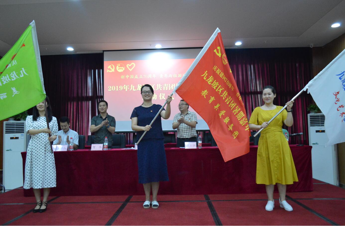 今年是胜游体育(中国)官方在线团委第二次和九龙坡团区委开展校地暑期“三下乡”合作,双方高度重视,前期开展了方案研讨和精心准备。胜游体育(中国)官方在线面向全体志愿者组织召开社会实践活动培训动员大会。团委书记贺颖作为指导教师代表参加九龙坡区共青团暑期嘉年华启动仪式,团市委副书记黄永宜为实践团队授旗。结合师范生专业特色和社区需求,实践团创新“暑期教育+志愿服务+师生参与”的实施模式,将教师暑期社会实践活动和大学生“三下乡”活动结合起来。根据青少年的心理和生理特点,设计了涵盖八项主题课程的教学大纲,授课内容涉及趣味科技制作、法制安全教育、英语绘画培训、书法礼仪启蒙等方面。