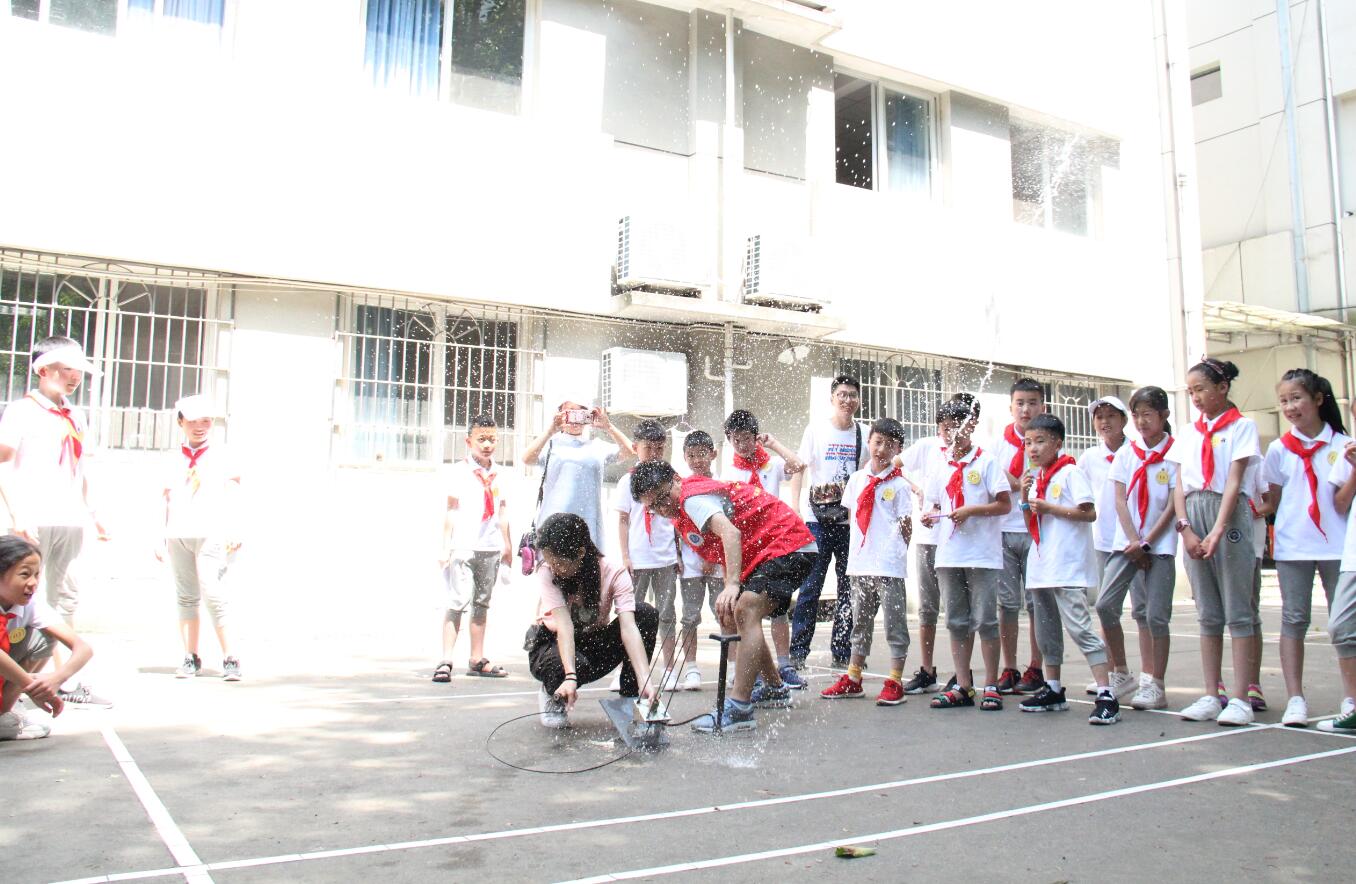 就餐完毕,小朋友们齐聚物理科学与技术胜游体育(中国)官方在线大阶梯教室,开始最重要的科普项目——趣味科学体验营。根据孩子们的主要年龄阶段和兴趣,王彪老师指导体验营精心准备了三个实验项目:“天庭”干冰、纸杯飞行器、“中航”水火箭。每一个实验展示,都让孩子们兴奋地跃跃欲试,在场内掀起一个又一个高潮。