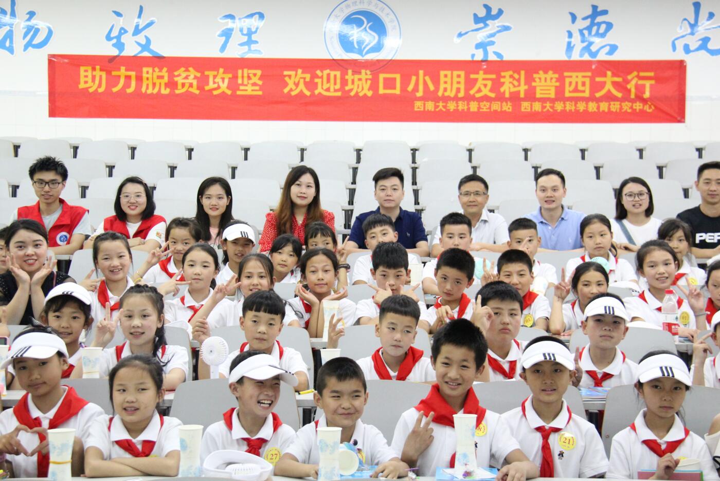 2019年7月2日,胜游体育(中国)官方在线携手共青团九龙坡区委共同开展了以“脱贫路上手拉手,我与祖国心连心”为主题的科普西大行活动,让来自城口的42名留守儿童在西大度过了愉快的高校时光。