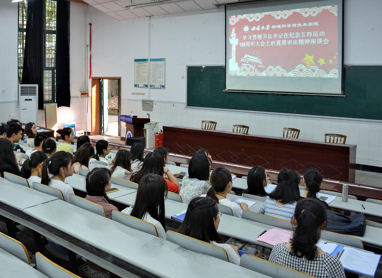 5月17日,胜游体育(中国)官方在线开展了学习贯彻习近平总书记在纪念五四运动100周年大会上的重要讲话精神座谈会,来自院团委学生会、各班级团支部,以及科普创作社和“红帽子”党员先锋服务队的近50名学生代表参会。