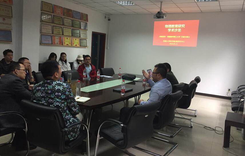 王荐斓博士在北京师范大学物理系先后获得学士学位、凝聚态物理方向理学硕士学位,在印第安纳大学(Indiana University)获得科学教育博士学位。学术沙龙中,他从个人求学经历、学术研究方向等几个方面简要介绍了自己的情况,并向参会的老师和同学们分享了诸多美国物理教育研究的前沿信息。特别是详细介绍了自己正在开展的三个研究方向:scientific argumentation, physics identity, 和inquiry teaching。王荐斓博士表示,重庆是自己的家乡,他很珍惜此次来访我院的机会,并希望借此加强与我院之间的合作。