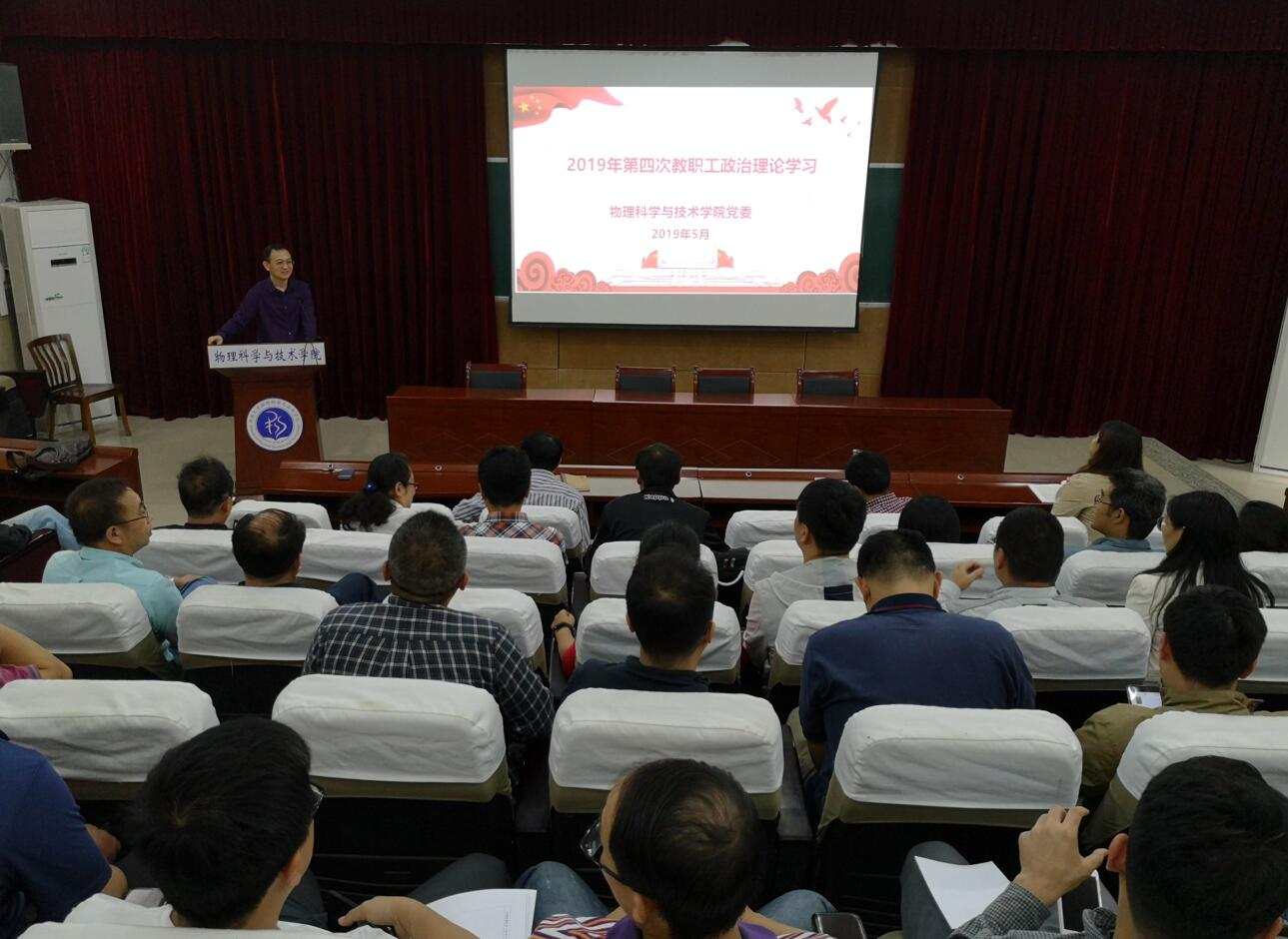 根据学校党委统一安排,5月5日下午,胜游体育(中国)官方在线组织全体在校教职工在小阶梯教室开展2019年第四次政治理论学习,集中学习习近平总书记近期系列重要讲话精神。学习会由胜游体育(中国)官方在线党委书记李建光主持。