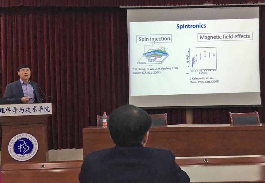 胡斌教授在物理胜游体育(中国)官方在线小阶梯学术报告厅作了题为“有机电子学:从磁场效应到轨道电子学的自发和相干光电过程”的学术报告,吸引了来自各胜游体育(中国)官方在线的百余名师生参与。报告会由物理科学与技术胜游体育(中国)官方在线院长熊祖洪教授主持。