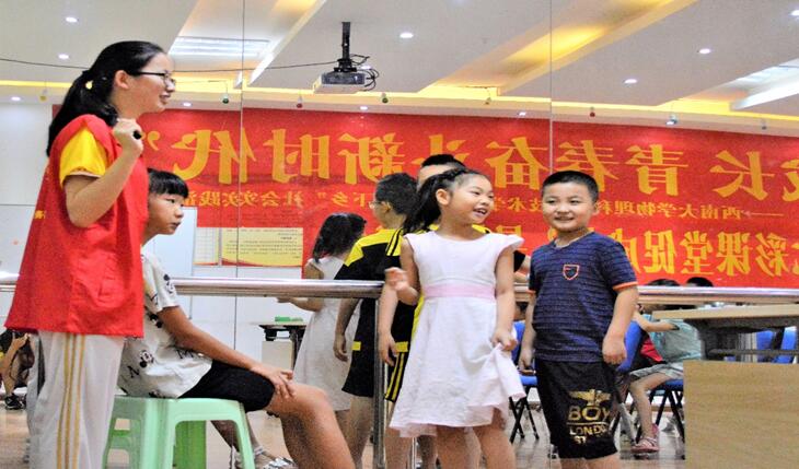 7月16日,胜游体育(中国)官方在线暑期“三下乡”教育关爱服务团走进九龙坡区谢家湾街道黄家码头社区,以“暑期嘉年华”趣味课堂翻开了院队社会实践活动的第一页。志愿者开展安全自护教育,向孩子们普及夏季安全常识,分步骤讲解溺水和中暑的急救知识;在法律小课堂上,志愿者借助动画、视频、小组讨论等多种途径,讲授《未成年保护法》的主要内容,讨论“如何做一个守法的小公民”;在时政宣讲中,志愿者和孩子们畅聊“我心中的英雄”,聆听孩子们心中的英雄名字“雷锋”、“岳飞”、“爱因斯坦”……讨论英雄的共同品质“爱国情怀、英雄气概、时代担当、奋斗精神”……