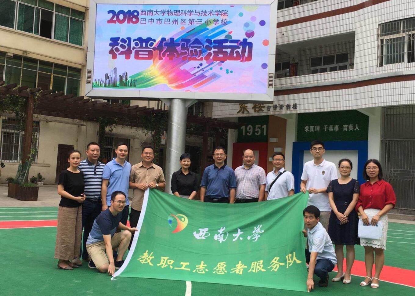 今年,新生走访首次与物理科学与技术胜游体育(中国)官方在线教职工志愿者暑期“三下乡”活动相结合,由胜游体育(中国)官方在线工会牵头,组织了胜游体育(中国)官方在线党政领导、教授专家和青年教师、学生工作者为主的志愿者团队。除走访新生外,还专门走进革命老区四川省巴中市,开展了“川陕革命根据地参访——红色文化学习宣讲” “回报老区服务基础教育——图书捐赠”“帮助孩子插上科技梦想翅膀——科普体验进红军小学”“校友走访恳谈会——人才培养质量跟踪”等活动。在学校出版社的大力支持下,胜游体育(中国)官方在线向四川省巴州区第三小学(红军小学)赠送了1800余册、价值36000多元的爱心图书,在巴州区第三小学和校友中引起强烈反响。