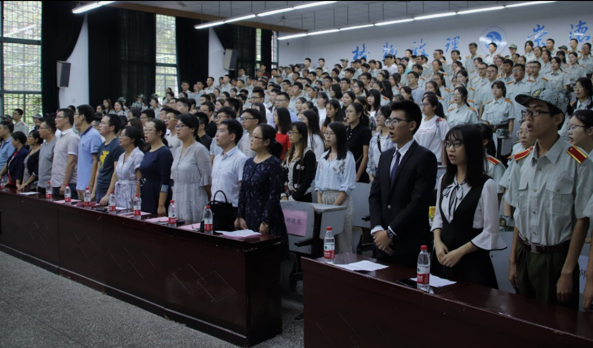最后,2018级公费师范3班的袁政道同学代表全体本科新生郑重承诺:“恪守‘格物致理、崇德尚善’的院训,在宝贵的大学时光里,用执着的信念探求真知、用坚定的步伐追寻理想、用无悔的付出演绎青春”。