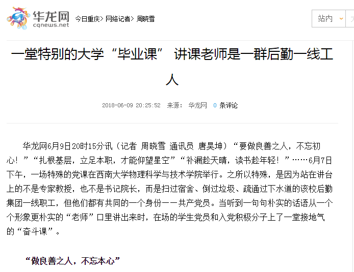 此次活动得到了重庆日报和华龙网的关注报道,学校主页也进行了报道。