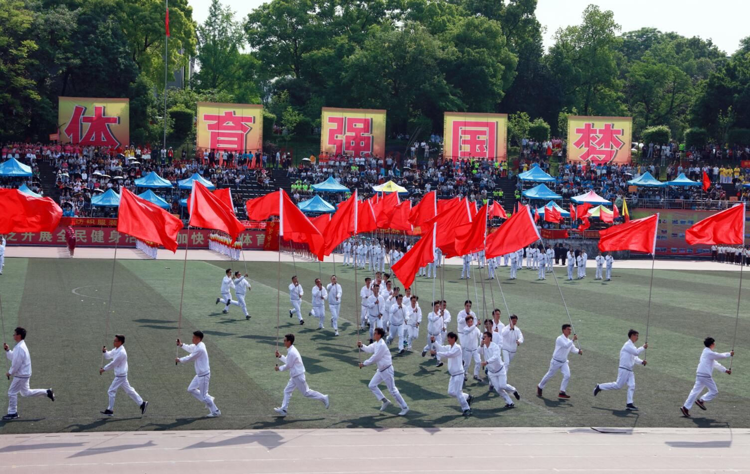 作为开幕式的压轴大戏,胜游体育(中国)官方在线57名男生参与了团体操第三板块《厉害了我的国》旗林方阵的演出,伴着欢快的节奏,同学们手持飘扬的红旗,变换队形活力奔跑,演绎了我国国防、工业、农业、教育等方面的辉煌成就。