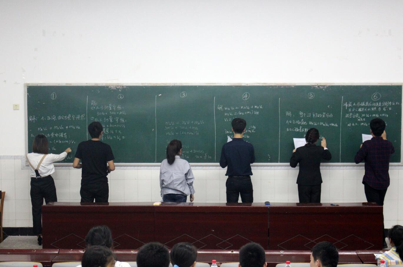 笔试题目选取的是一道物理高考题,选手们基本能在规定时间内顺利完成作答。最精彩的是模拟教学环节,2016级师范1班蹇林函同学直观形象地讲解了《闭合定律欧姆定律》,推理清楚,展现了物理教师应有的严谨规范;2016级师范2班严祎祺同学生动有趣地讲解了《力的合成》,结合高考题分析加深了对知识点的阐释;最后上场的2016级师范4班刁祥同学探究了《法拉第电磁感应定律》,实验现象明显,现场互动得当,赢得阵阵掌声。