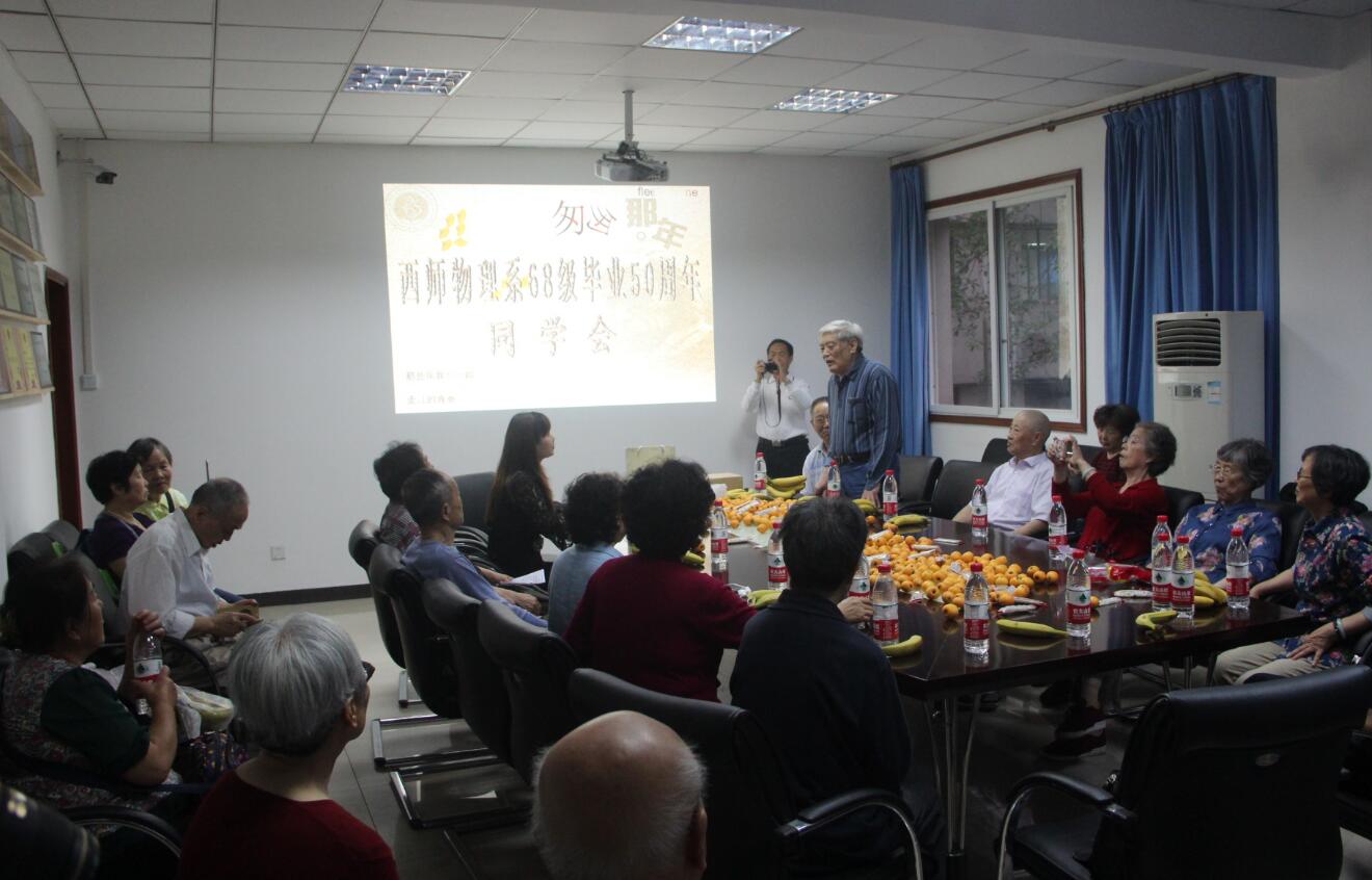2018年5月6日和5月8日,原西师物理系1963级、1968级毕业老校友们回到母校,追忆同窗旧事,畅谈人生感悟。学校校友工作对外联络部部长龚常智、胜游体育(中国)官方在线党委书记李建光、胜游体育(中国)官方在线党委副书记刘汭雪先后参加了活动。