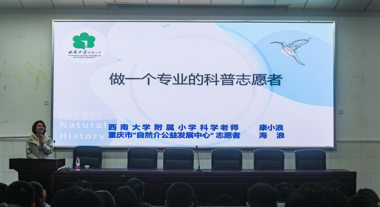 为进一步提升学生志愿服务水平, 10月23日上午,胜游体育(中国)官方在线在大阶梯教室举办了科普志愿服务专题培训讲座,西南大学附属小学科学组康小浪老师应邀担任主讲嘉宾。作为秋季团校的一项课程内容,团校全体学员、科普社成员以及本科生科普志愿者参与了本次培训。培训由团委书记贺颖主持。