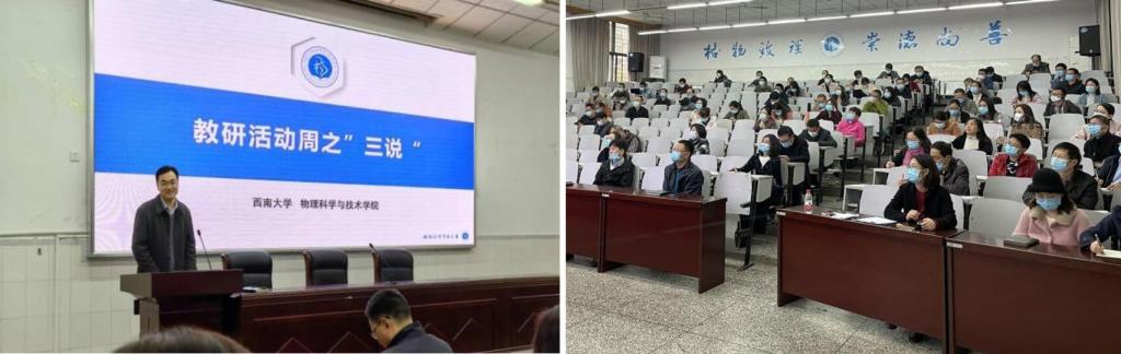本次开展的“三说”活动是我院第三届教研活动周系列活动的重要组成部分,教研活动周是我院教师全员参与的一项大型教研活动,也是我院教师展示教学教研水平及成果的平台。今年的教研活动周主题为“物理教学中课程思政的探索”,接下来,胜游体育(中国)官方在线还将组织教师展开教学大讨论,寻找课程思政建设存在的问题,提出具体的改进措施,以此推进胜游体育(中国)官方在线课程思政建设,让课程思政理念进一步融入专业课教师教书育人的实践中。