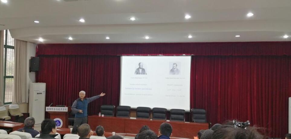 2021年12月23日下午,上海大学敖平教授应学校邀请来我院进行学术交流,为大家带来一场题为“统一物理学和生物学动力学规律的新数学结构”的精彩报告。学校张卫国校长主持了报告会,重庆大学有关专家、我校蚕桑纺织与生物质科学胜游体育(中国)官方在线、生命科学胜游体育(中国)官方在线以及我院的师生参加了此次报告。