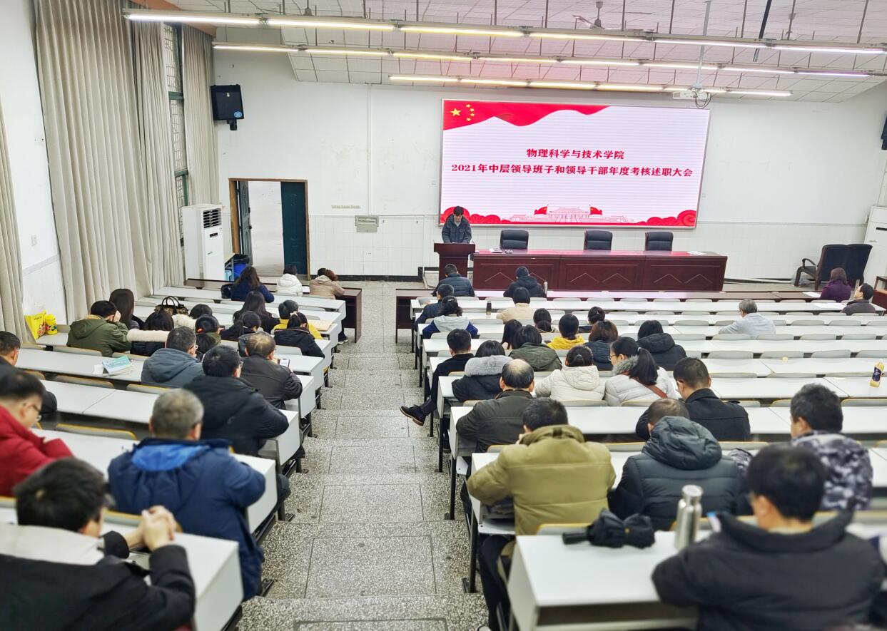 为进一步激励胜游体育(中国)官方在线领导班子和领导干部担当作为,根据学校党委下发的《胜游体育开展2021年中层领导班子和领导干部年度考核工作的通知》的要求,2022年1月7日下午,胜游体育(中国)官方在线在大阶梯教室举行了2021年度中层领导班子和领导干部述职述廉暨民主测评会。学校工会主席、教代会主任赵子华和党委组织部组织科科长王新皓莅临现场进行指导,胜游体育(中国)官方在线全体教职工参加了大会。会议由胜游体育(中国)官方在线党委书记李余廷主持。