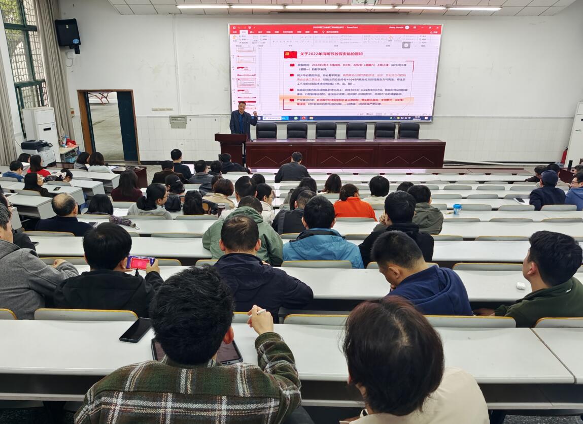 最后,李余廷书记通报了学校胜游体育2022年清明节放假的安排,并结合学校有关疫情防控工作的要求,从离渝和返校的疫情防控政策要求、清明节文明祭祀、廉洁自律过节和节假日值班值守等方面,进行了工作布置和重点提醒。