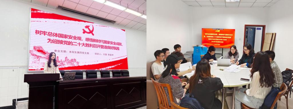 学生党支部集中观看了《树立总体国家安全观 以实际行动维护和塑造国家安全——千万师生同上一堂国家安全教育课》视频,组织学习了《中华人民共和国国家安全法》,扫码开展了“全民国家安全教育”知识自测,并围绕主题进行了讨论交流。大家纷纷表示要树立国家安全底线思维,将国家安全意识转化为自觉行动,强化责任担当,从我做起,以实际行动为迎接党的二十大胜利召开营造良好氛围。