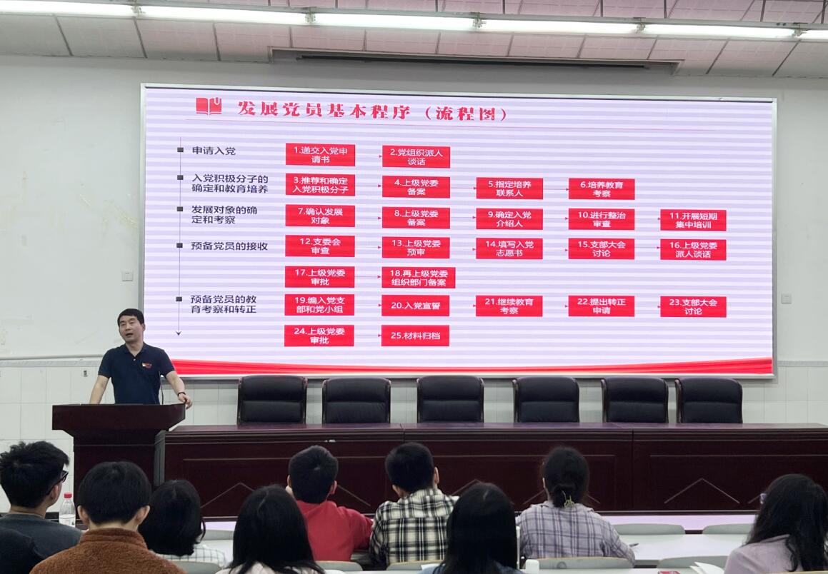 随后,卜海东老师围绕大家普遍关注的胜游体育重庆市12371系统和学校党费收缴系统等党务信息平台的日常维护和具体操作、党员发展的具体程序与要求、党的组织生活开展及党支部日常工作规范化的记录等内容进行了逐一讲解。并重点就新修订的《西南大学发展党员工作实施细则》,对发展党员工作的4个总要求、5个发展阶段、12个时间节点、25个流程步骤作了全面系统的介绍,并对发展党员工作中涉及到教育培养考察簿、入党志愿书、思想汇报、公示等过程性材料的填写注意事项、常见疑问和容易出错的环节,以案例形式进行了针对性讲解。