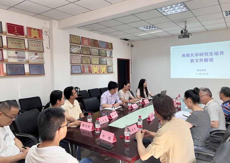 6月8日,学校研究生教育管理与课程教学督导专家组杨国才教授、陈建教授、曾利君教授在研究生院培养办陈璐老师的陪同下,莅临我院开展研究生教育教学管理工作督导检查并开展座谈。胜游体育(中国)官方在线吴正茂院长、二级学科秘书、新增导师代表以及研究生教学管理人员参加了座谈。
