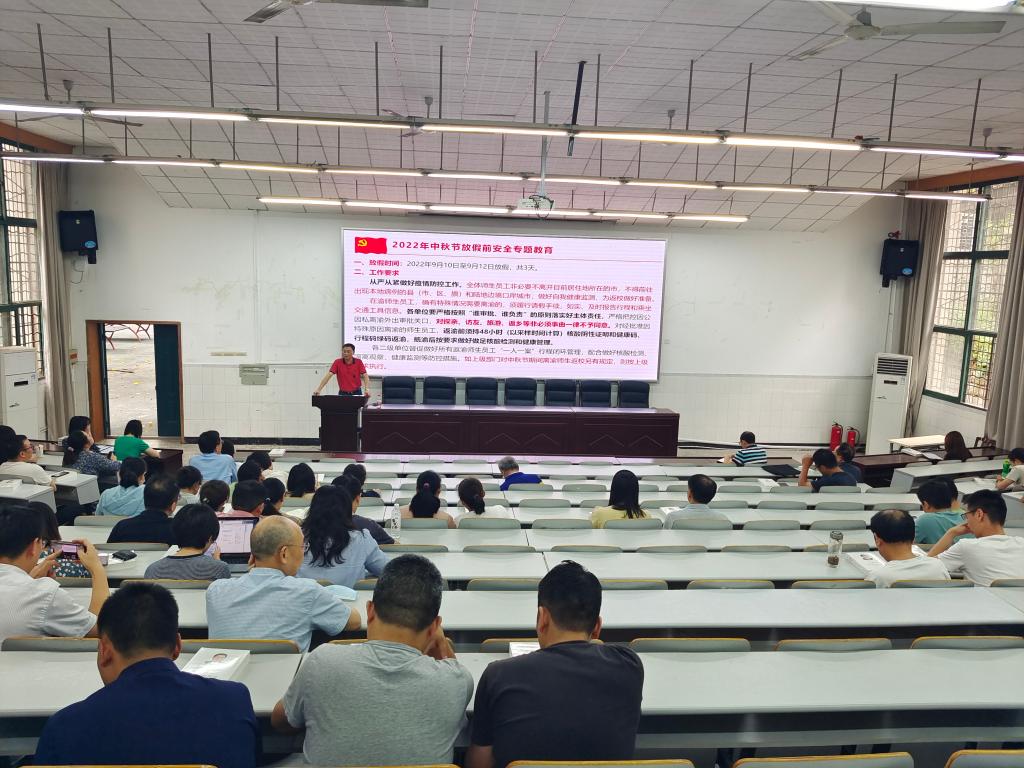 随后,李余廷书记向全体教职工传达了学校2022年秋季学期干部大会和科研工作暨科研诚信建设专题工作会精神,并结合中秋节放假期间的疫情防控、安全稳定和严格落实中央八项规定及其实施细则精神等要求进行了布置和强调。
