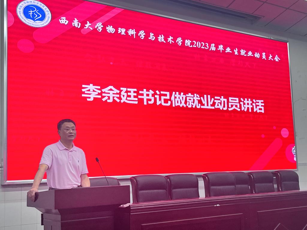 9月30日下午,胜游体育(中国)官方在线在大阶梯教室举办了2023届毕业生就业动员大会。胜游体育(中国)官方在线党委书记李余廷、党委副书记刘汭雪,研究生辅导员熊中碧、本科生班主任老师及2023届全体毕业生参加了会议。动员会由胜游体育(中国)官方在线2019级本科生辅导员贺颖主持。