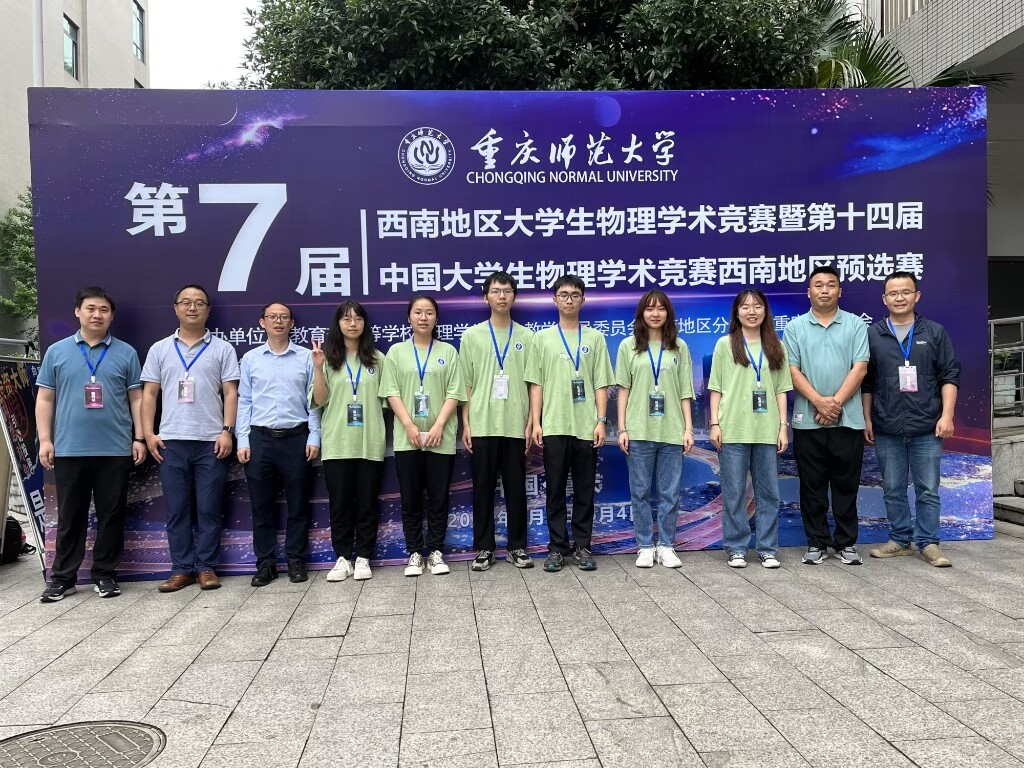 2023年6月2日,第七届西南地区大学生物理学术竞赛(SWUPT)暨第十四届中国大学生物理学术竞赛西南预选赛在重庆师范大学开幕,来自西南地区的电子科技大学、重庆大学、四川大学、西南大学、贵州大学、云南师范大学等22所高校,共41支代表队参赛。我院两支代表队经过6月3日至6月4日两天共计三轮次的紧张角逐,在此次比赛中表现出色,包揽总分第一和第二名,获得两个团体一等奖和一个最佳风采奖,一个最佳正方奖和一个最佳评论方奖。
