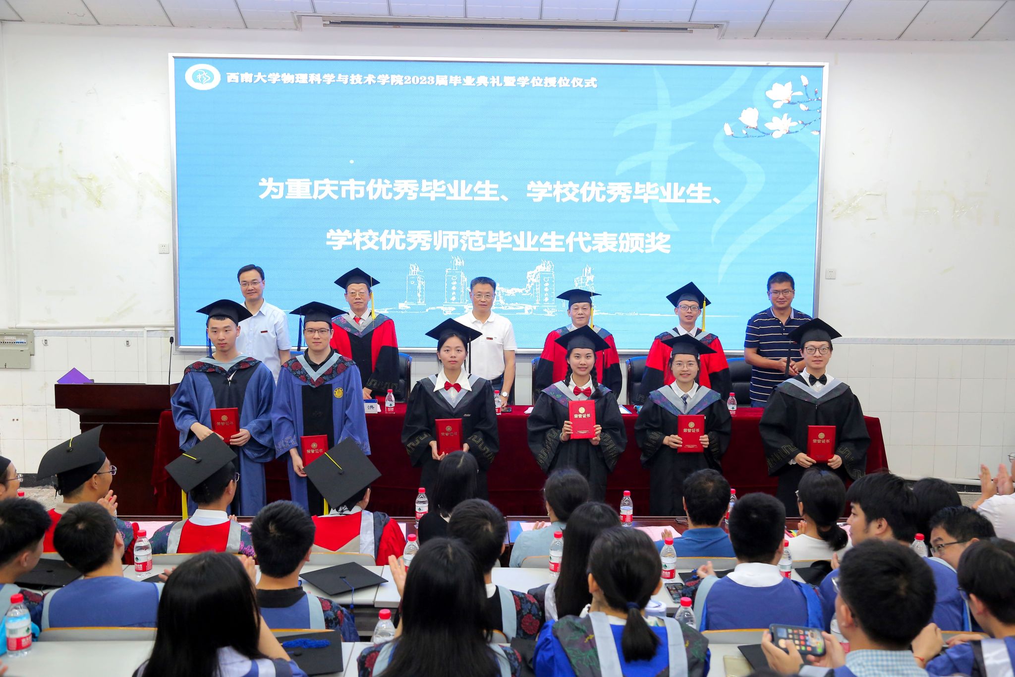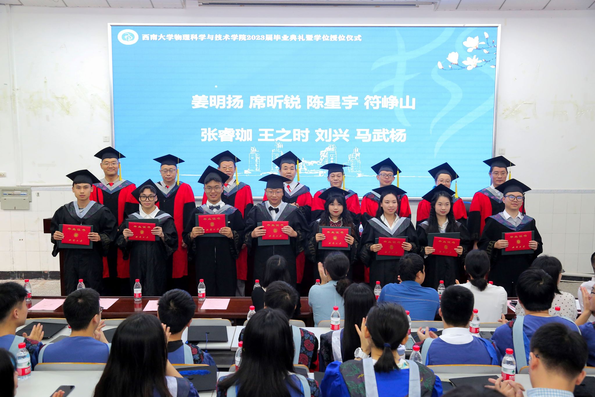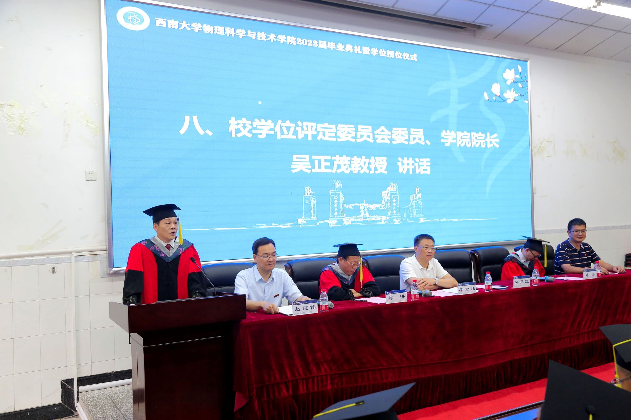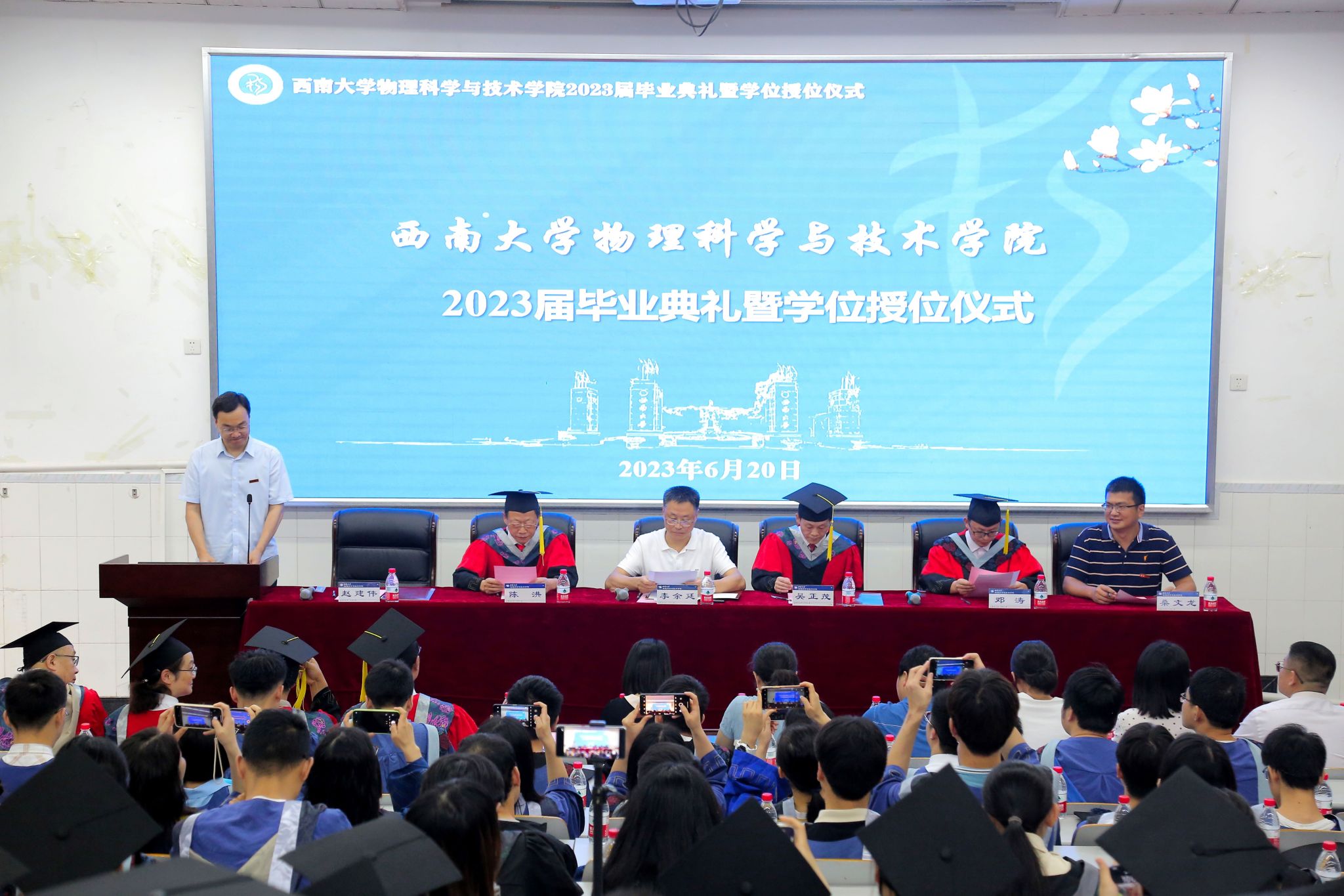 6月20日上午,胜游体育(中国)官方在线2023届学生毕业典礼暨授位仪式在物理大楼大阶梯教室隆重举行。院党委书记李余廷,校学位评定委员会委员、院长吴正茂,院学术委员会主任陈洪,校学术委员会委员、副院长邓涛,副院长桑文龙出席典礼。胜游体育(中国)官方在线学术委员会全体成员、工会主席、办公室主任、教务办主任、教师代表、毕业年级辅导员和班主任、2023届研究生本科生以及家长代表共计200余人参加了典礼。典礼仪式由副院长赵建伟主持。