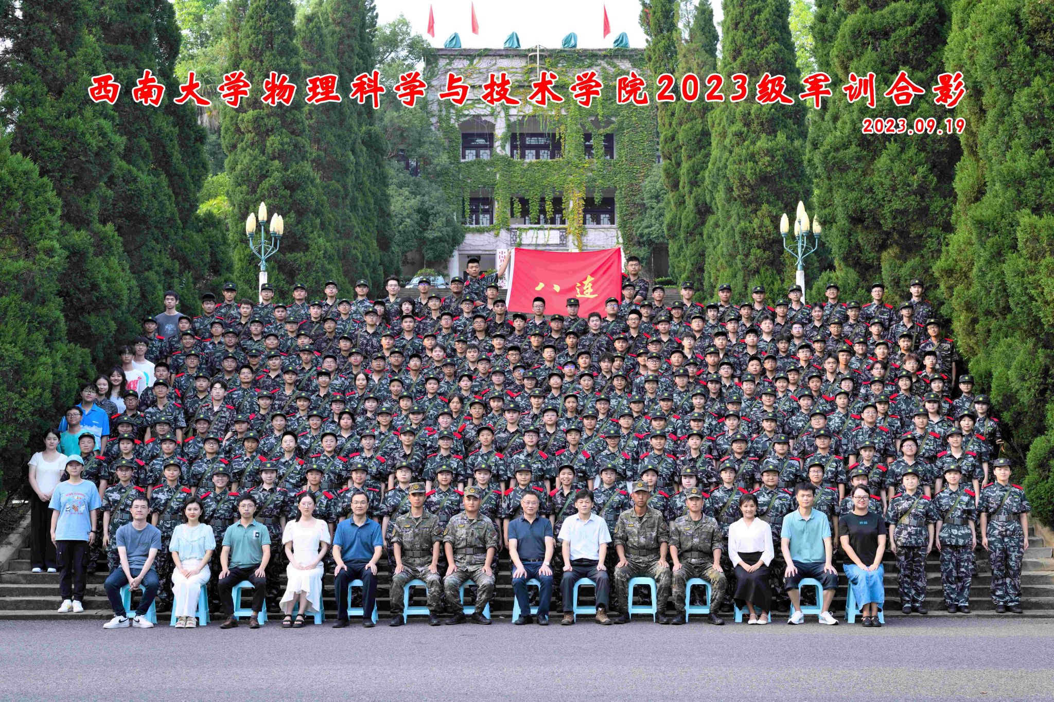 9月11日至9月25日,2023级238名本科生参加了为期14天的集中军训,建制为一团二营八连,设置四个排,娄霞副书记担任指导员,贺颖老师担任副连长。