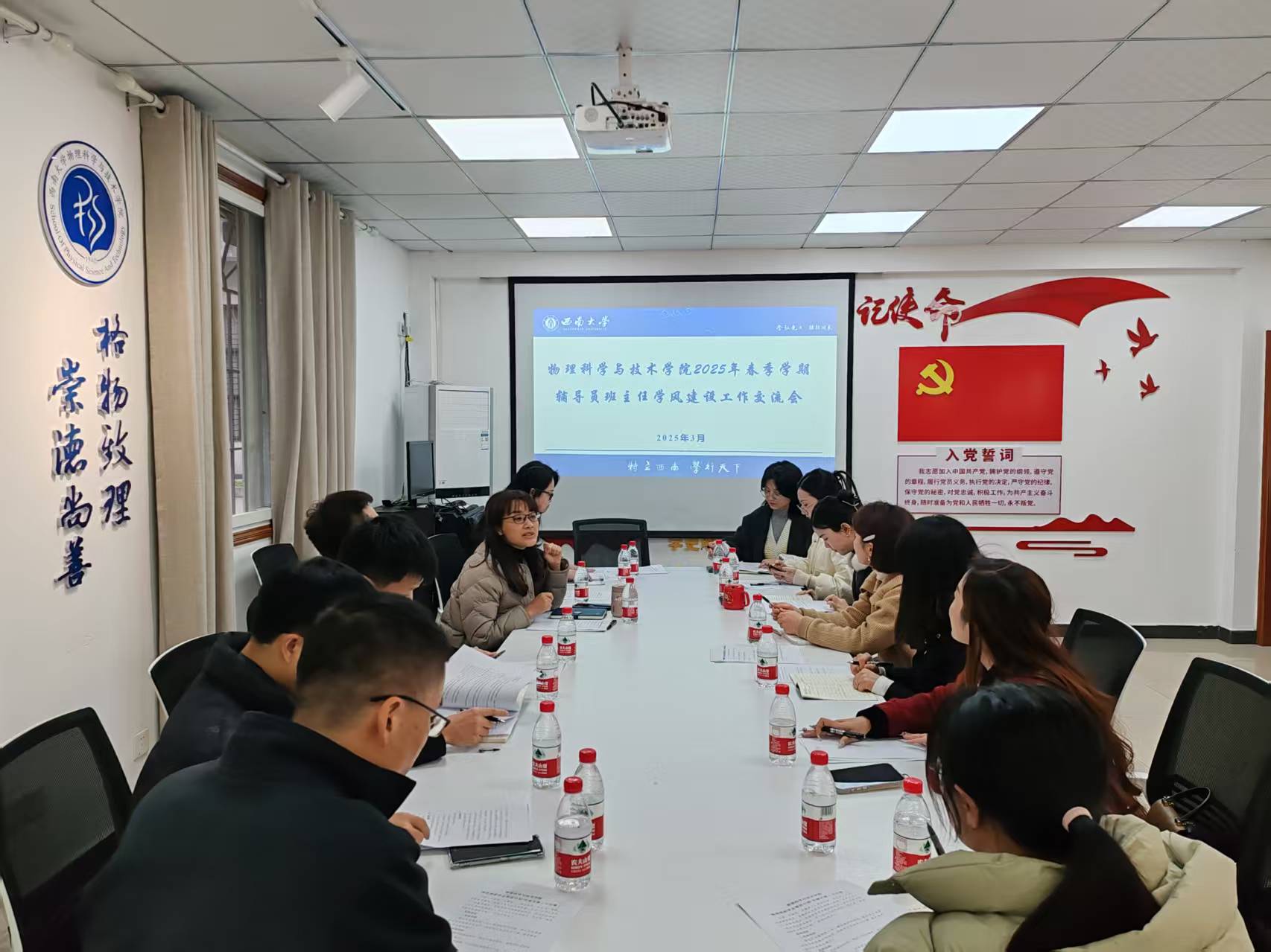 3月19日,胜游体育(中国)官方在线在物理大楼128会议室召开了2025年春季学期班主任工作交流会。党委副书记娄霞、全体专兼职辅导员和班主任出席会议,会议围绕学风建设主题进行深入交流探讨。