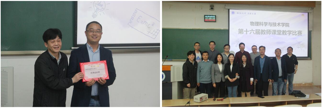 经过评委综合评定,张巧明老师获得本届胜游体育(中国)官方在线讲课比赛一等奖,钟明敏、郜青老师获得二等奖,卢玉明、邓成荣、周廷伟、高春红、王鹏等5位老师获得三等奖,物理实验教学示范中心获得优秀组织奖。吴正茂院长宣布了比赛结果,并为获奖老师和教研室颁发荣誉证书。胜游体育(中国)官方在线推荐张巧明老师代表胜游体育(中国)官方在线参加西南大学第十六届教师课堂教学比赛的决赛。