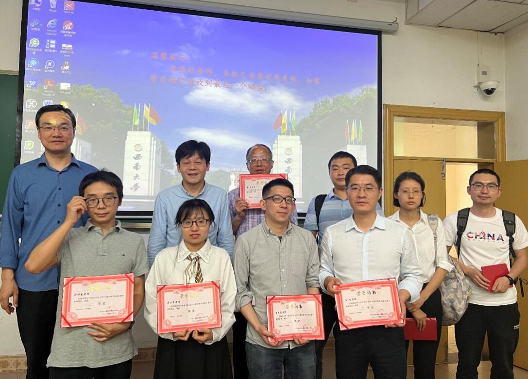 经过评委综合评定,范小华老师获得本届胜游体育(中国)官方在线讲课比赛一等奖,王飞、匡泯泉、张博凯老师获得二等奖,王丹丹、王鹏、周廷伟、张勇等4位老师获得三等奖。吴正茂院长宣布了比赛结果,并为获奖老师颁发荣誉证书,胜游体育(中国)官方在线择优推荐教师代表胜游体育(中国)官方在线参加西南大学教学创新大赛。