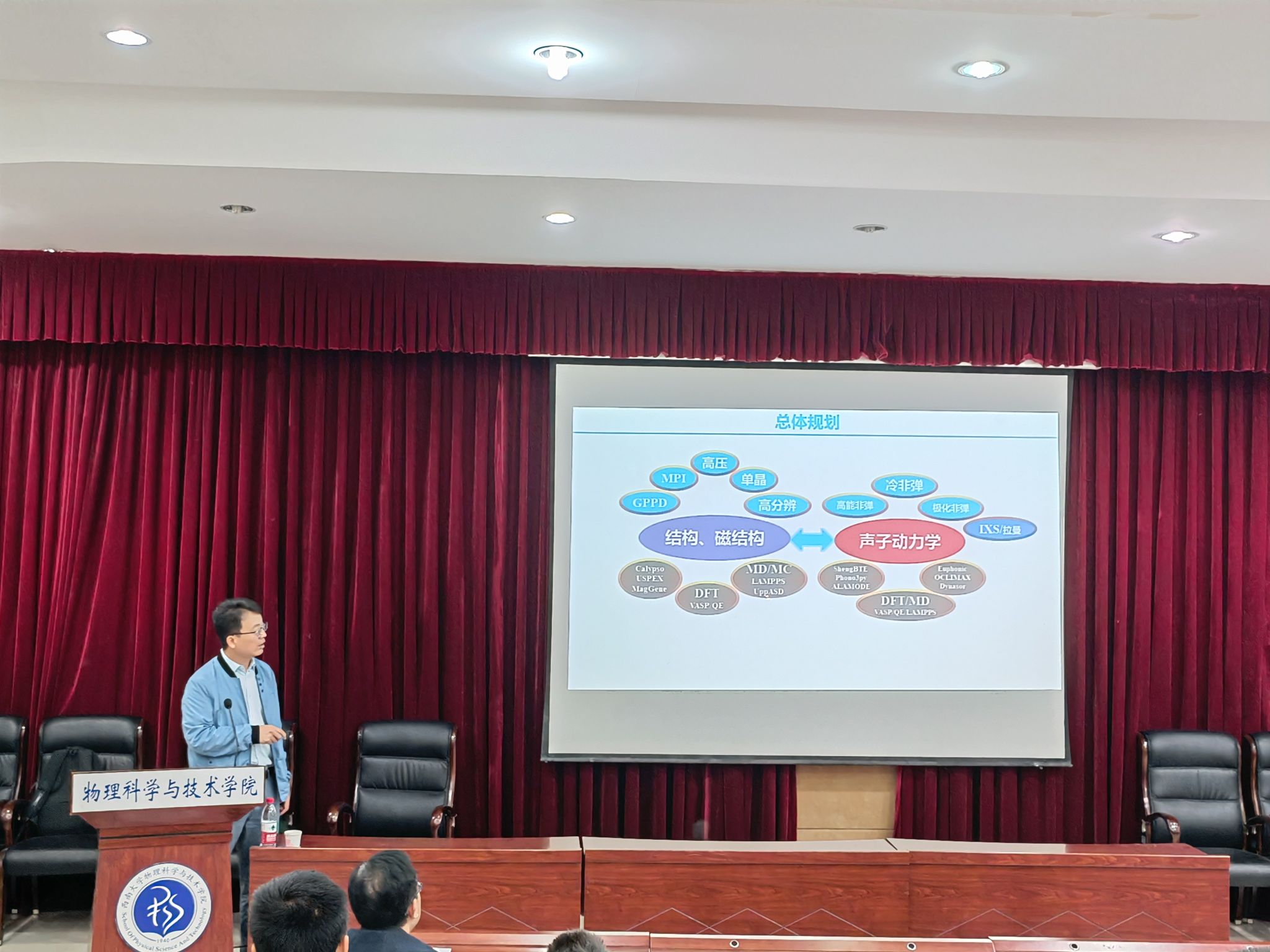 王保田副研究员首先对胜游体育(中国)官方在线的热情邀请表示感谢,接下来主要分享其团队近年来在单层Sn、Kagome晶格135及166体系的超导电性、CDW和拓扑态等方面的研究,并细致分析了压力及电子温度等对这些物态的调控,引发了同学们的深刻思考。王保田副研究员既有深度又有高度的报告开拓了同学们的眼界,激发了同学们的兴趣,加深了同学们对于结合第一性原理计算和中子散射实验研究材料结构和声子动力学的理解并提供了新的思路。
