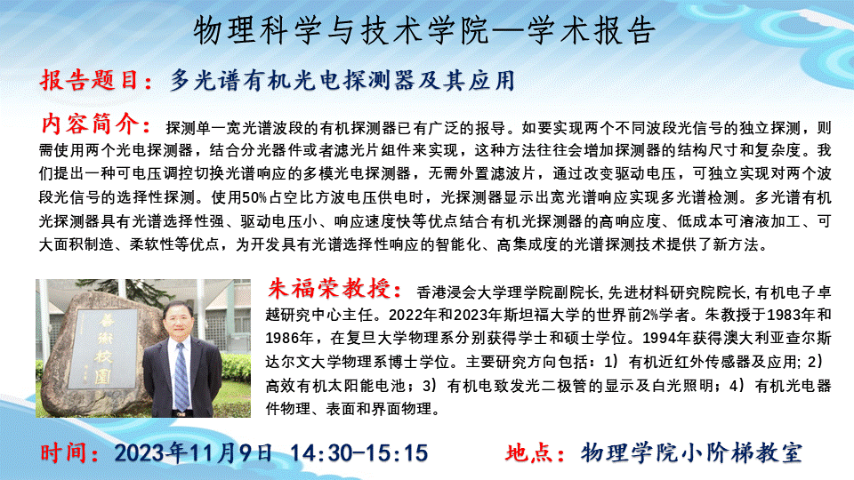 【学术报告】光电探测、成像及应用