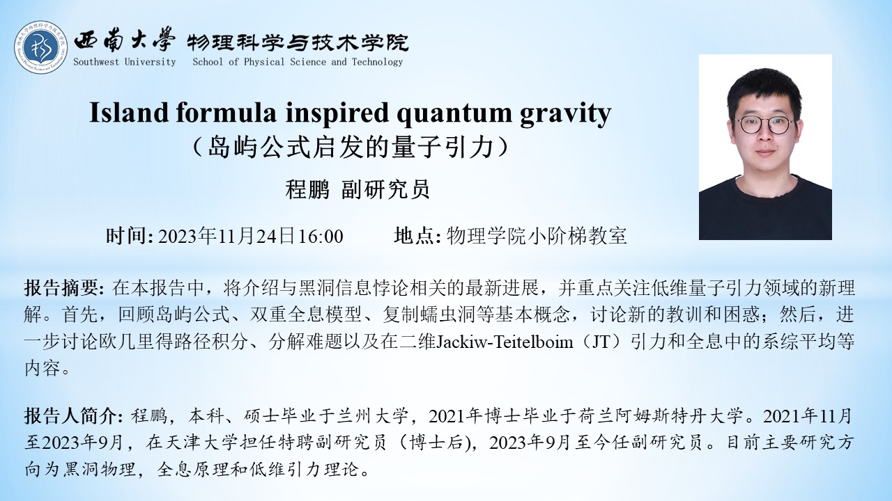 【学术报告】岛屿公式启发的量子引力