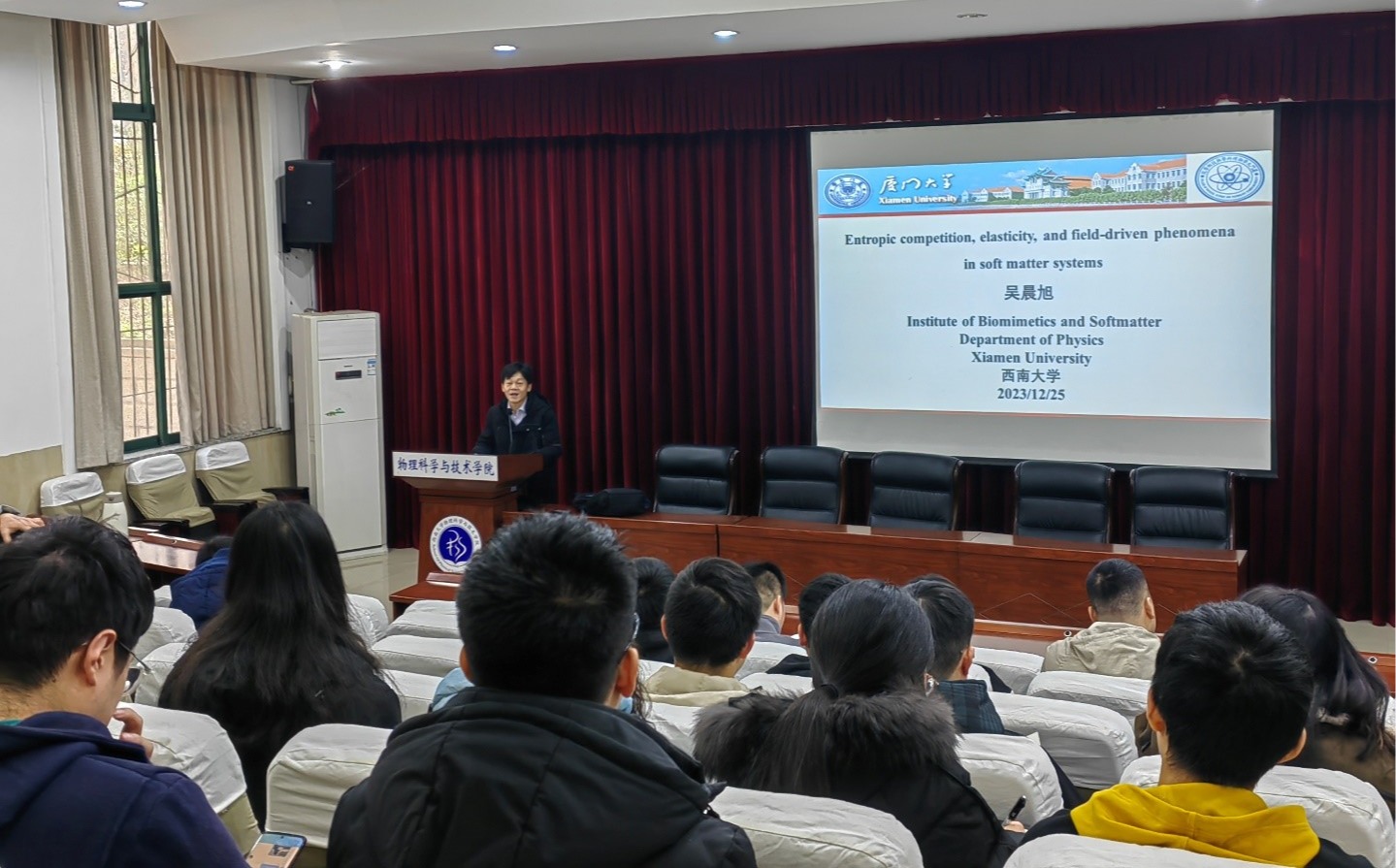 2023年12月24日至25日,国务院学位委员会物理学学科评议组委员,厦门大学吴晨旭教授应邀来我院进行学术交流。