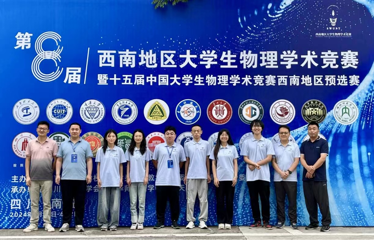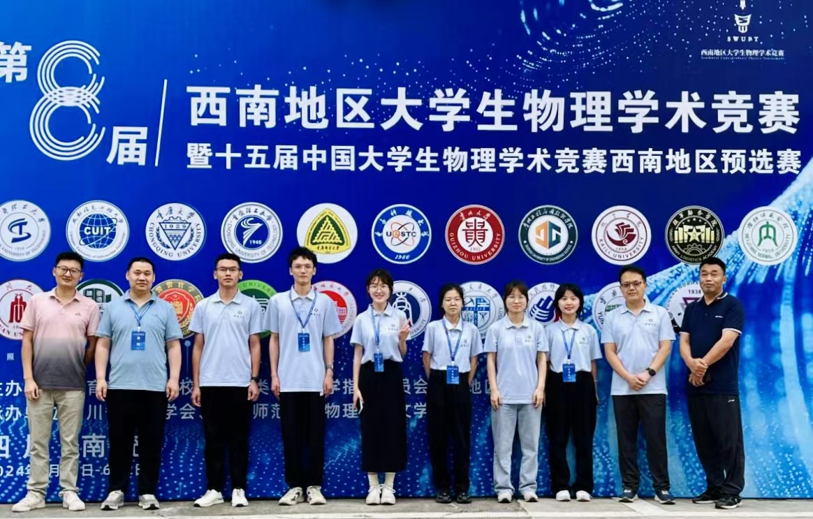 2024年6月1日,第八届西南地区大学生物理学术竞赛(SWUPT)暨第十五届中国大学生物理学术竞赛西南地区预选赛在西华师范大学开幕,来自西南地区的电子科技大学、重庆大学、四川大学、西南大学、贵州大学、云南师范大学等18所高校参与角逐。本届比赛包含团队赛和作品赛,共35支代表队参加团队赛,29个项目参加作品赛。经过两天共计三轮次的紧张角逐,我院代表队在比赛中表现出色,获得两个团体一等奖、两个作品赛一等奖及一个最佳评论方奖。