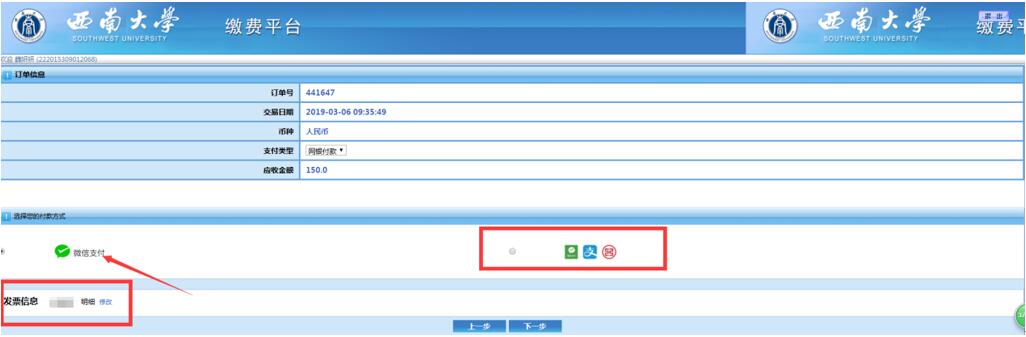 第4步:选择支付(微信或支付宝、银行卡)方式后,,请大家保证相关支付平台内余额充足。点击下一步进入付款页面