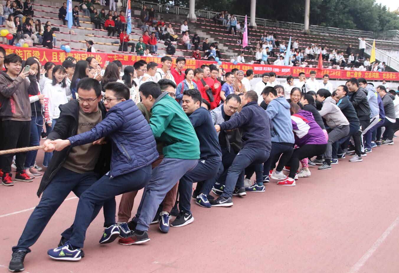 开幕式结束后,教工组比赛随即开始。老师们热情高涨,积极投入到滚铁环、风火轮等九个比赛项目中。比赛现场气氛热烈,在短跑项目中,老师们如离弦的箭,奋力奔向终点;拔河项目中,老师们巧用摩擦力知识,放低重心齐心协力;铅球项目中,老师们精准发力,抛出一条条优美的抛物线。学生们备受感染,在赛道边为老师们加油助威。